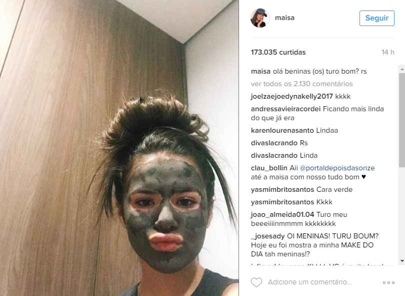 Os vídeos mostraram a gata com aquele jeito Maisinha de ser, toda bem humorada. Ela contou que se trata de uma máscara detox de argila vulcânica. Como vários produtos deste tipo, ele seca após um tempo, e aí a garota brincou que estava com a cara meio imóvel.